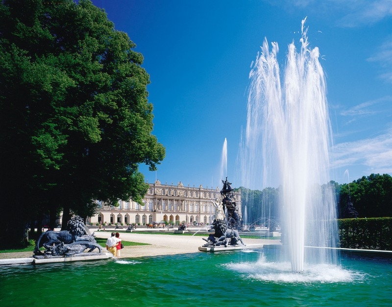 Дворец Херренкимзее - находится на самом большом острове (Herreninsel) посреди обширного озера Кимзее - самого большого озера Баварии. Ещё не было закончено строительство Линдерхофа, когда 21 мая 1978 года заложили первый камень дворца-замка Херренкимзее, который сначала хотели построить в долине Грасвангталь, назвав его анаграммой «Meicost Ettal». Король очень страдал от того, что это оказалось невозможным из-за грандиозных масштабов запланированной постройки. Непомерная роскошь и расточительство, поражающие нас в Линдерхофе, здесь многократно превзойдены и в исполнении рабочей силы, и в затратах финансовых средств. После того, как остров был конфискован у церкви и сменил несколько владельцев, Людвиг купил его в сентябре 1873г. Год спустя, во время своей поездки во Францию, он самым тщательным образом осмотрел Версаль. И разработка проекта, и строительство проходили стремительными темпами. Первый визит короля в новый замок состоялся уже в 1881 году. На момент смерти короля 50 из 70 комнат дворца-замка ещё стояли без обстановки. «Сказочный» король так и не смог до конца осуществить свои планы и в этом дворце......