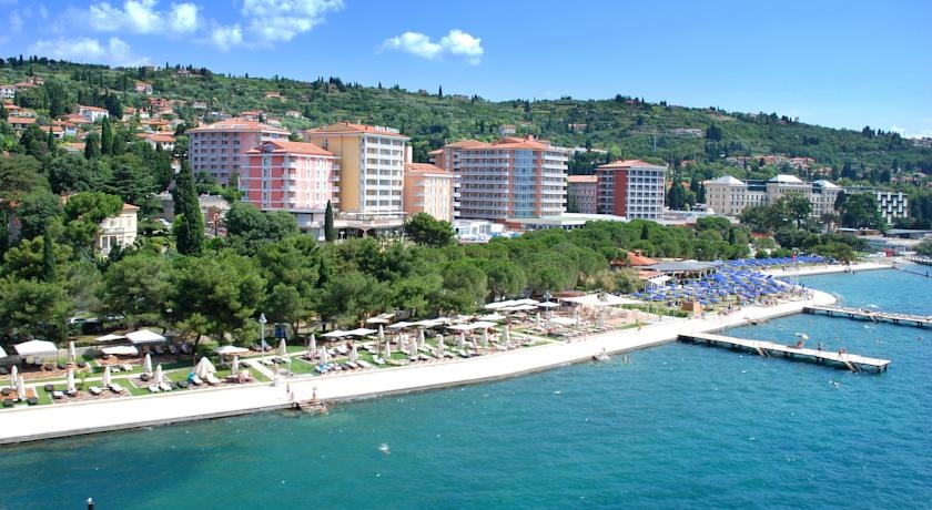 Отель стоит на холме и имеет прекрасный вид на весь Порторож, в 200 метрах от моря. Море через дорогу. Вокруг отеля очень зелено и тихо. Отель связан крытым переходом с «Терме & Велнесс LifeClass» и с отелями «Гранд Отель Порторож», «Нептун», «Аполло».