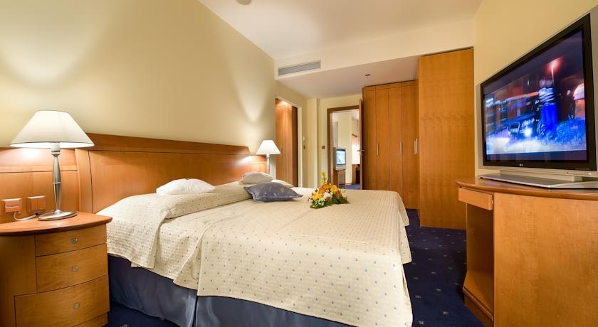 спутниковое ТВ (включая 2 русских канала), доступ к Интернету LAN и Wi-Fi, кондиционер, мини-бар, телефон, сейф, ортопедические матрацы. В ванной комнате: душевая кабинка или ванна, косметическое зеркальце, двухскоростной фен, отапливаемый пол, большое зеркало, репродукторы от телевизора.